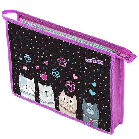 Папка для тетрадей ЮНЛАНДИЯ А4, 1 отделение, пластик, на молнии, "Cat squad", 273347