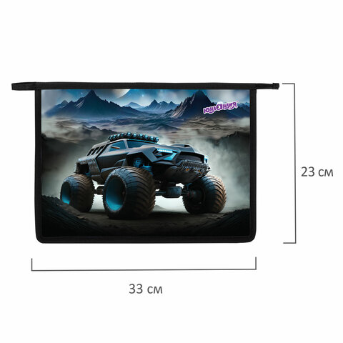 Папка для тетрадей ЮНЛАНДИЯ А4, 1 отделение, пластик, на молнии, "Space driver", 273352