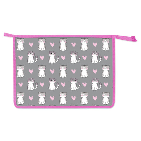 Папка для тетрадей ЮНЛАНДИЯ А4, 1 отделение, пластик, на молнии, "Sweet whiskers", 272137