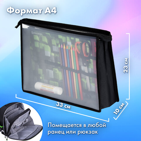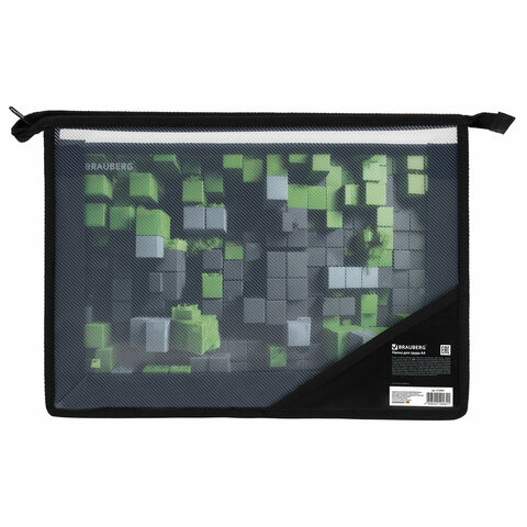 Папка для труда BRAUBERG А4, 2 отделения, пластик, молния сверху, органайзер, "Module blocks", 273400