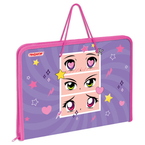 Папка для труда на молнии с ручками ПИФАГОР А4, 1 отделение, пластик, органайзер, "Anime eyes", 272228