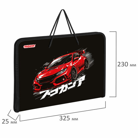 Папка для труда ПИФАГОР "Street race" с ручками предназначена для хранения и переноски тетрадей, альбома для рисования, цветной бумаги, картона и других бумажных принадлежностей.
