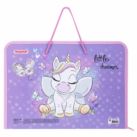 Папка для труда ПИФАГОР А4 "Sweet Dreamer" с ручками предназначена для хранения и переноски тетрадей, альбома для рисования, цветной бумаги, картона и прочих бумаг.