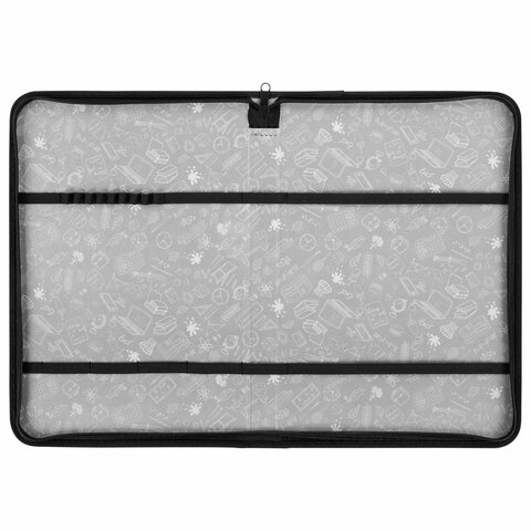 Папка на молнии BRAUBERG с ручкой и органайзером. Внутри папки – крепления для канцелярских и письменных принадлежностей. Застежка-молния расположена по периметру папки.