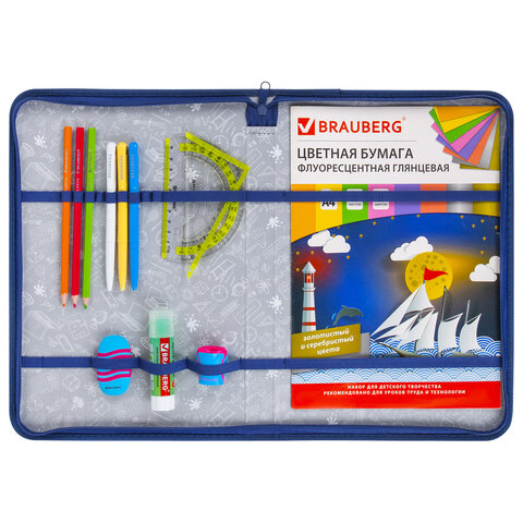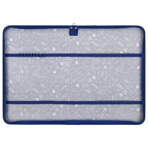 Папка на молнии BRAUBERG с ручкой и органайзером. Внутри папки - крепления для канцелярских и письменных принадлежностей. Застежка-молния расположена по периметру папки.