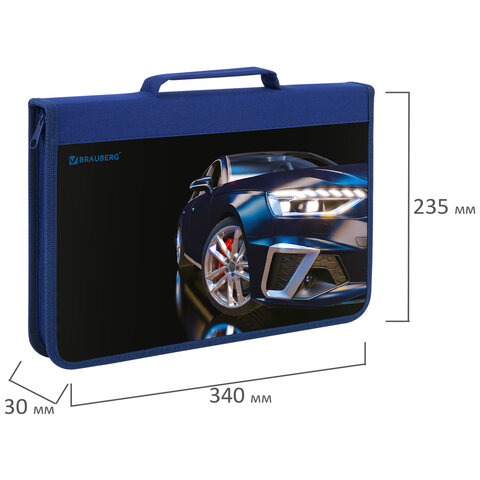 Папка на молнии BRAUBERG А4 с ручкой, с органайзером, 1 отделение, "Super car", 272219