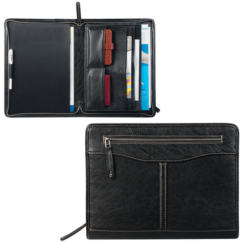 Папка из кожзаменителя на молнии, 340х260х25 мм, черная, 26-151-1