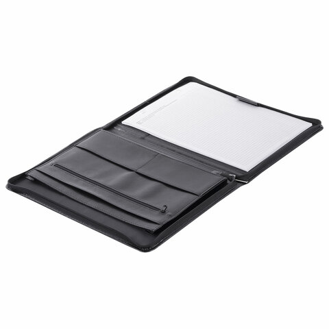 Папка "Лидер" из искусственной кожи черного цвета – стильный и функциональный аксессуар для офисных работников.