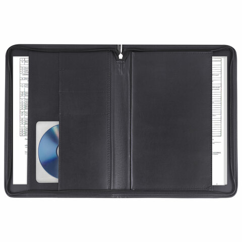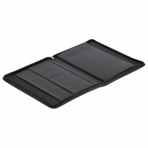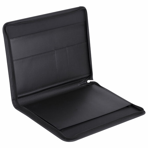 Конструкция папки позволяет ей широко распахиваться, открывая удобный доступ к различным внутренним отделениям.