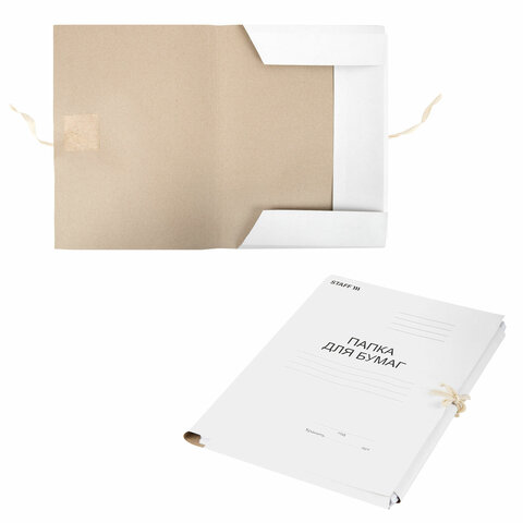 Папка для бумаг с завязками картонная STAFF, гарантированная плотность 220 г/м2, до 200 л., 126525