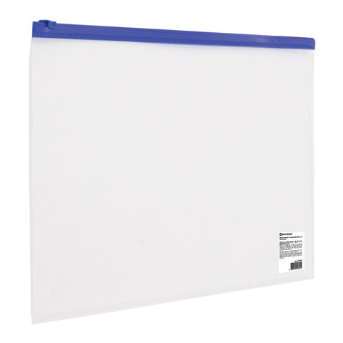 Папка-конверт на молнии А4 (230х333 мм), прозрачная, молния синяя, 0,11 мм, BRAUBERG, 221010