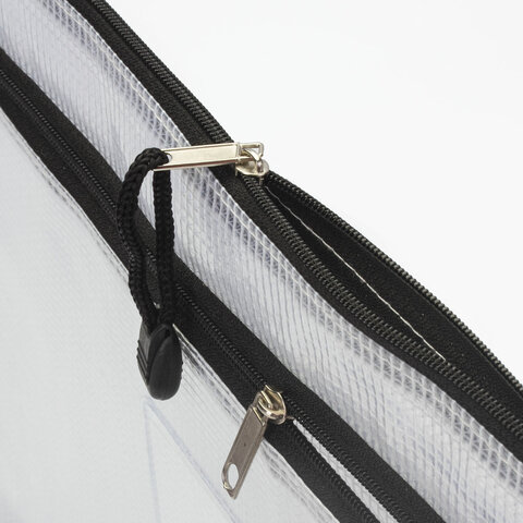 Папка-конверт на молнии А4 (335х243 мм), 2 отделения, ПВХ, прозрачная, 0,3 мм, BRAUBERG "Solid", 223889