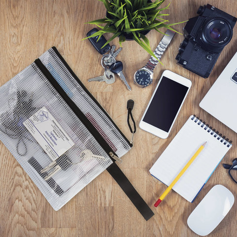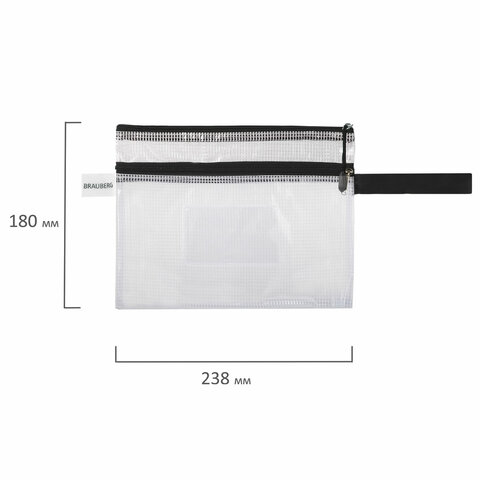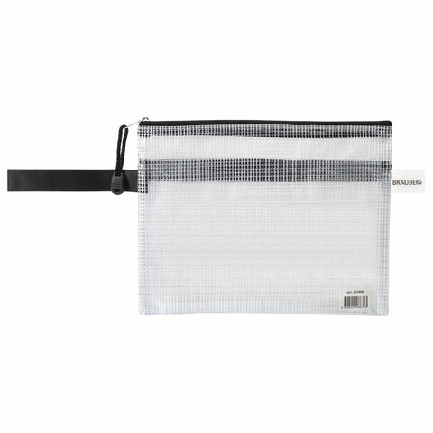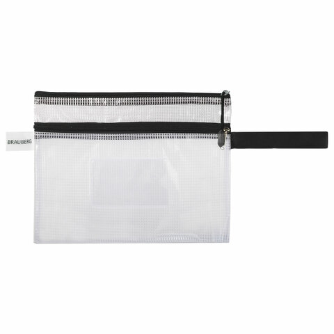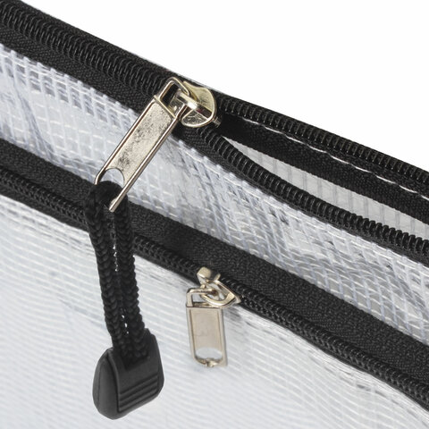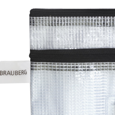 Папка-конверт на молнии МАЛОГО ФОРМАТА (238х180 мм), А5, 2 отделения, ПВХ, сетка, прозрачная, 0,3 мм, BRAUBERG "Solid", 223890