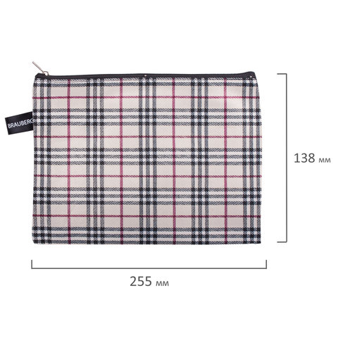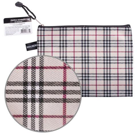 Папка-конверт на молнии МАЛОГО ФОРМАТА (238х180 мм), А5, ткань в клетку, BRAUBERG "Checked", 223893