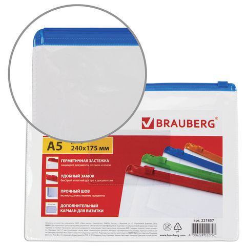 Папка-конверт на молнии BRAUBERG "Smart" идеально подойдет для хранения и транспортировки документов.