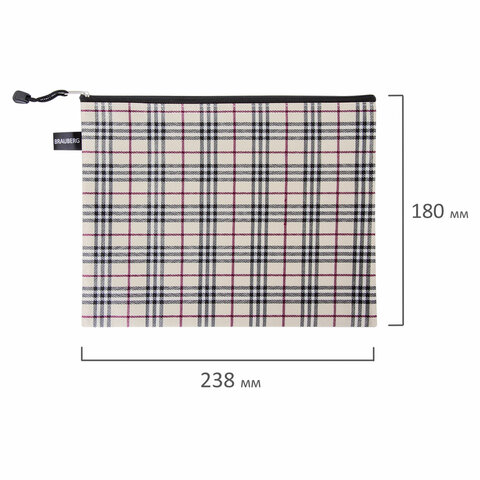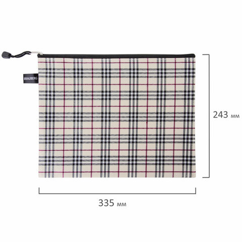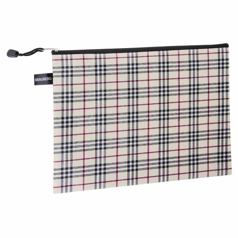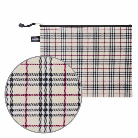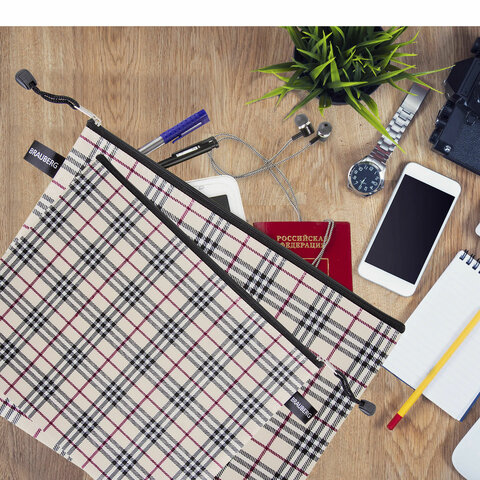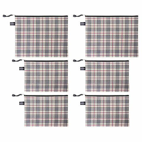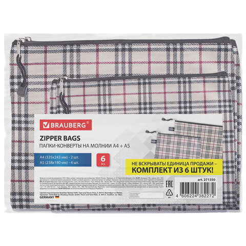 Папка-конверт СУПЕР КОМПЛЕКТ на молнии, 6 штук (А4 - 2 шт., А5 - 4 шт.), ткань в клетку, BRAUBERG, 271350