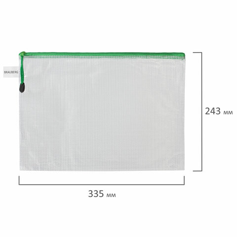 Папка-конверт СУПЕР КОМПЛЕКТ на молнии ПЛОТНЫЕ 4 штуки А4, сетчатая, BRAUBERG, 271348