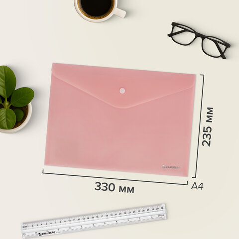 Папка-конверт с кнопкой А4, КОМПЛЕКТ 8 шт., пастельные цвета ассорти, BRAUBERG "PASTEL", 0,18 мм, 272865