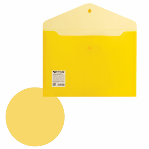 Папка-конверт с кнопкой BRAUBERG А4 до 100 л. прозрачная желтая СВЕРХПРОЧНАЯ 0,18 мм, 270472