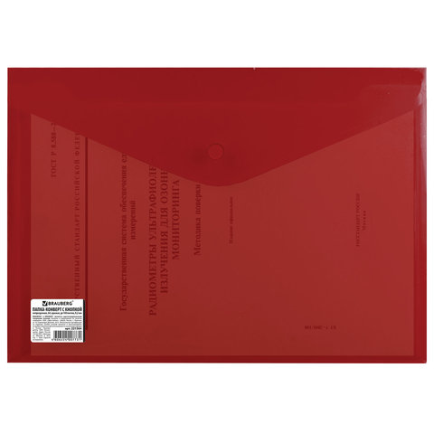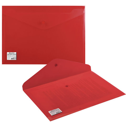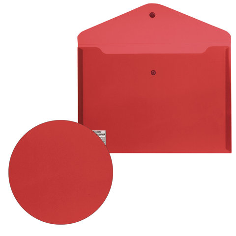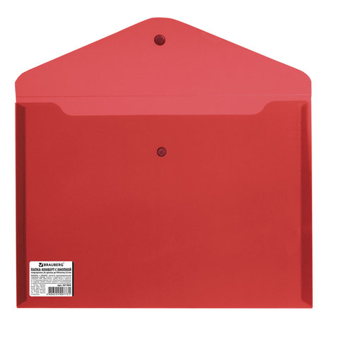Папка-конверт с кнопкой BRAUBERG, А4, до 100 листов, непрозрачная, красная, СВЕРХПРОЧНАЯ 0,2 мм, 221364