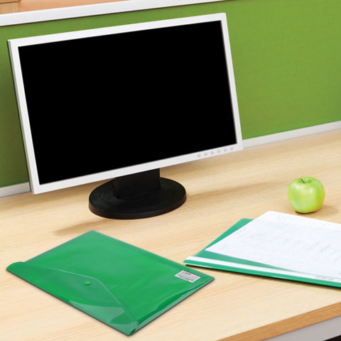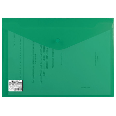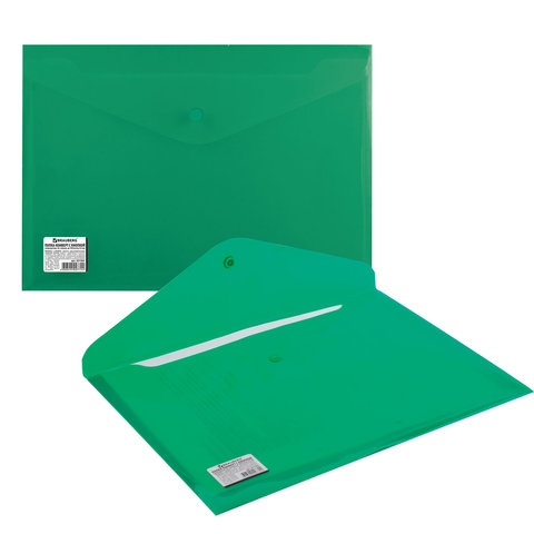 Папка-конверт с кнопкой BRAUBERG, А4, до 100 листов, непрозрачная, зеленая, СВЕРХПРОЧНАЯ 0,2 мм, 221363