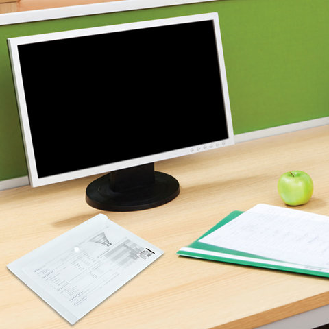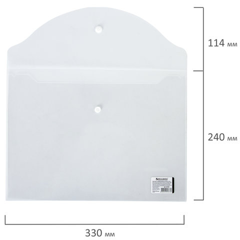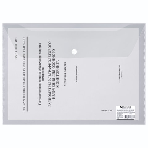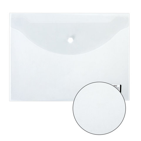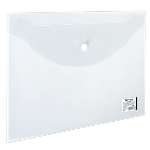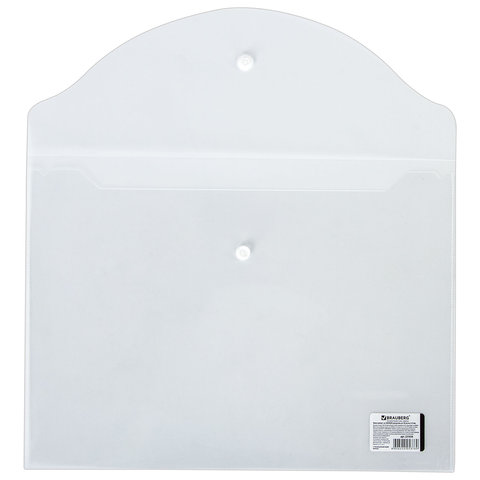 Папка-конверт с кнопкой BRAUBERG, А4, до 100 листов, прозрачная, 0,15 мм, 221638