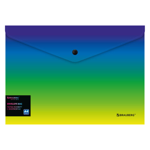Папка-конверт с кнопкой BRAUBERG "Grade", А4, до 100 листов, зелено-голубой градиент, 0,18 мм, 271962