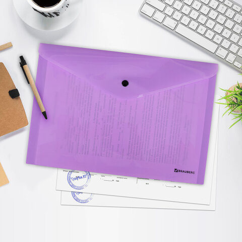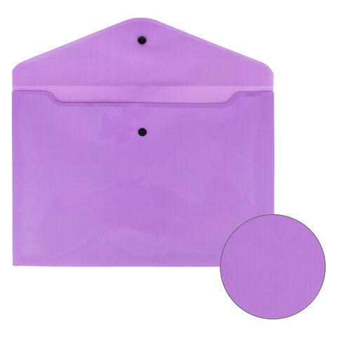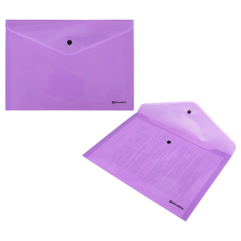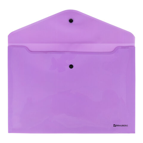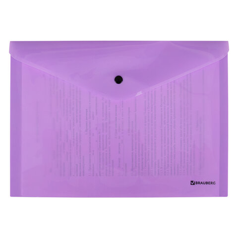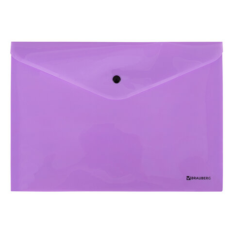 Папка-конверт с кнопкой BRAUBERG "Pastel", А4, до 100 листов, непрозрачная, лиловая, 0,18 мм, 270475