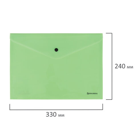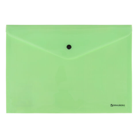 Папка-конверт с кнопкой BRAUBERG "Pastel", А4, до 100 листов, непрозрачная, мятная, 0,18 мм, 270477