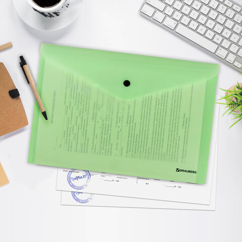 Папка с кнопкой BRAUBERG - универсальная модель для хранения, транспортировки и защиты документов и мелких предметов от негативных внешних факторов. Станет незаменимым помощником для школьников, студентов, офисных работников и творческих людей.