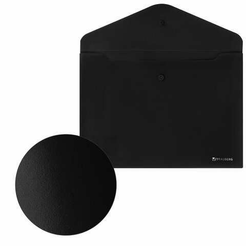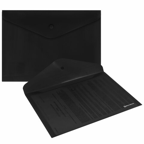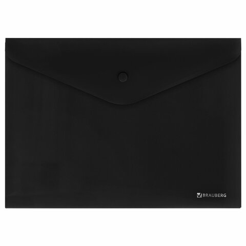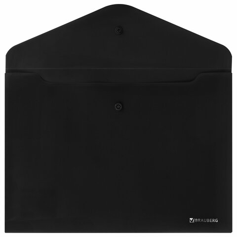 Папка-конверт с кнопкой BRAUBERG "SUPER", А4, матовая непрозрачная, черная, ПРОЧНАЯ 0,2 мм, 272879