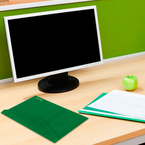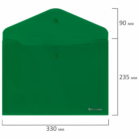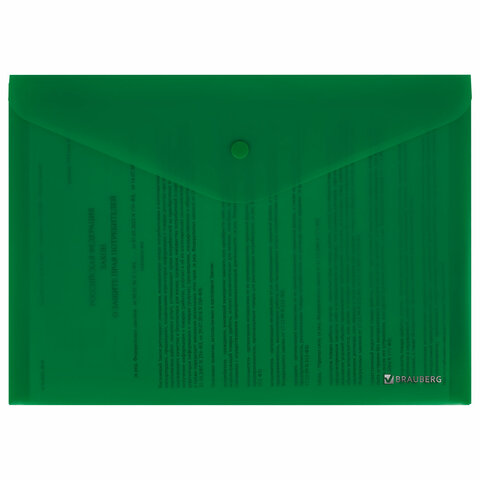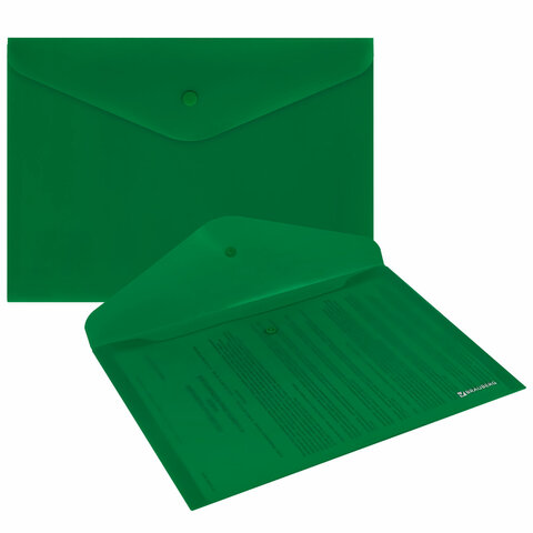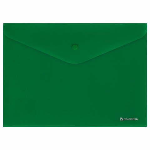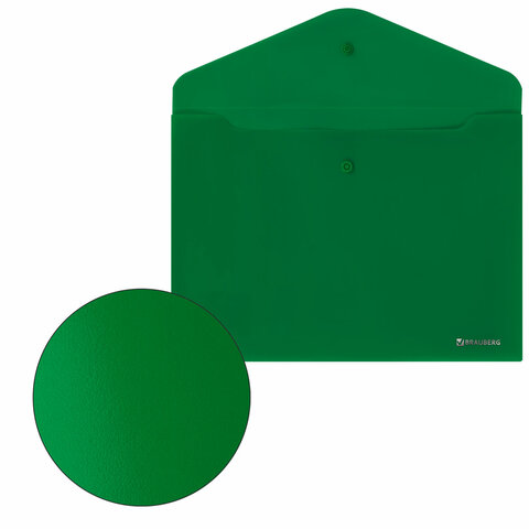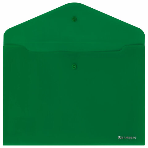 Папка-конверт с кнопкой BRAUBERG "SUPER", А4, матовая непрозрачная, зеленая, ПРОЧНАЯ 0,2 мм, 272877
