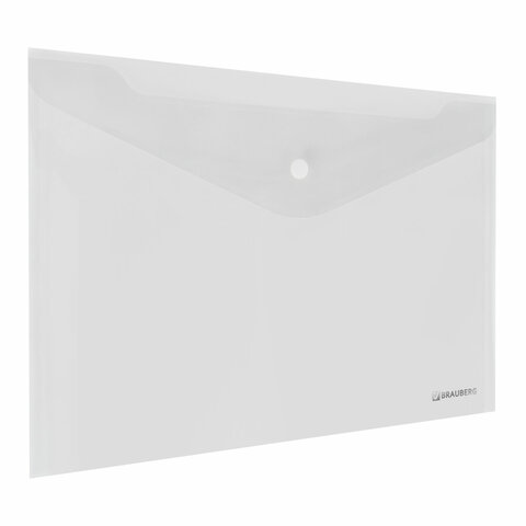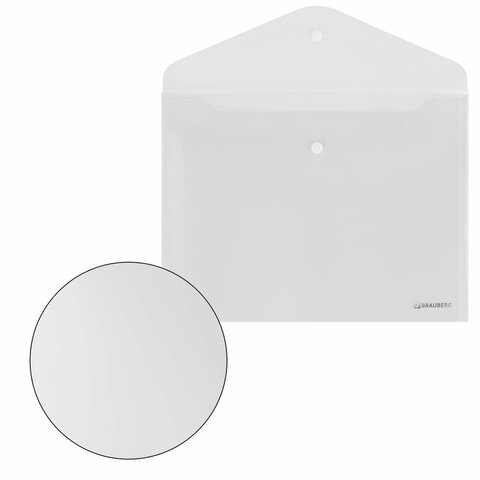 Папка-конверт с кнопкой BRAUBERG "SUPER", А4, прозрачная, ПРОЧНАЯ 0,2 мм, 272876