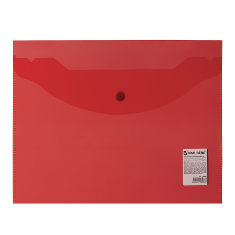 Папка-конверт с кнопкой МАЛОГО ФОРМАТА (240х190 мм), А5, прозрачная, красная, 0,18 мм, BRAUBERG, 224026