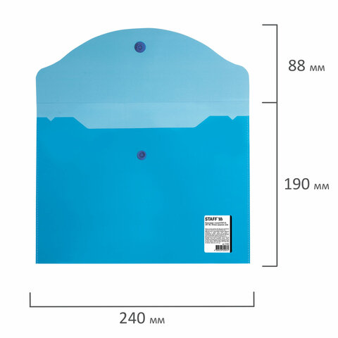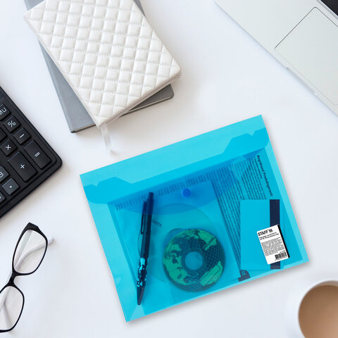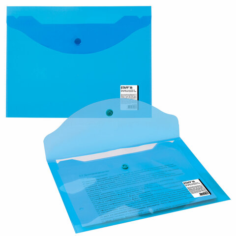 Папка-конверт с кнопкой МАЛОГО ФОРМАТА (240х190 мм), А5, прозрачная, синяя, 0,15 мм, STAFF, 270466
