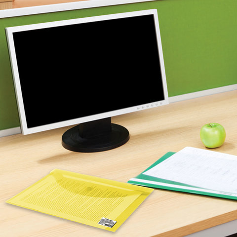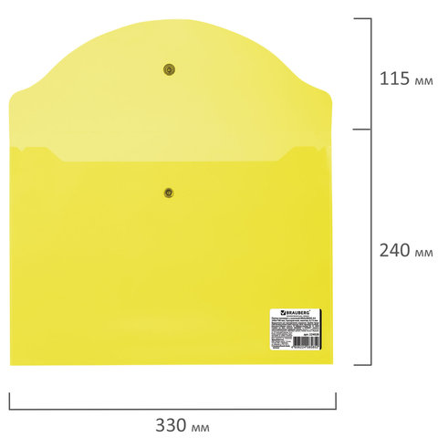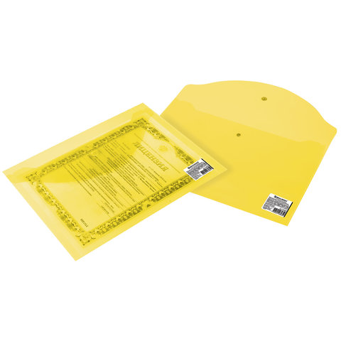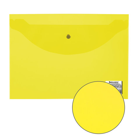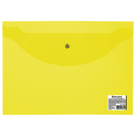 Папка-конверт с кнопкой МАЛОГО ФОРМАТА (240х190 мм), А5, прозрачная, желтая, 0,18 мм, BRAUBERG, 224028