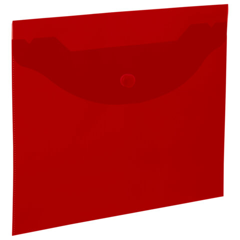 Папка-конверт с кнопкой прозрачная МАЛОГО ФОРМАТА, А5, BRAUBERG "UNIVERSAL", красная, 0,15 мм, 273068