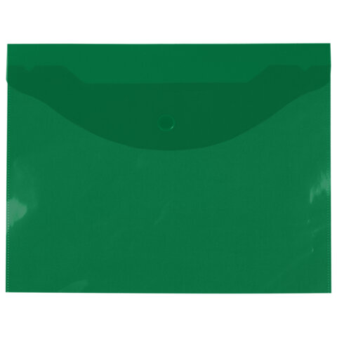Папка-конверт с кнопкой прозрачная МАЛОГО ФОРМАТА А5, BRAUBERG UNIVERSAL, зеленая, 0,15 мм, 273069