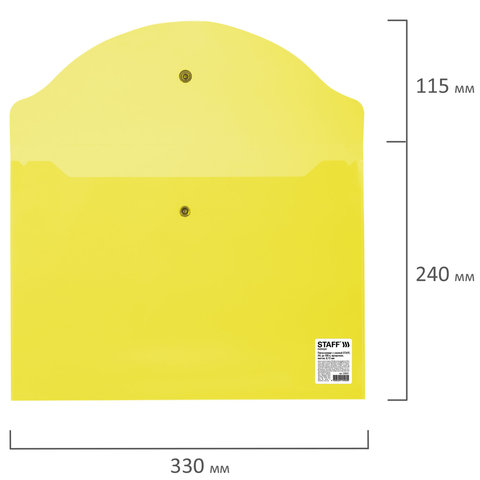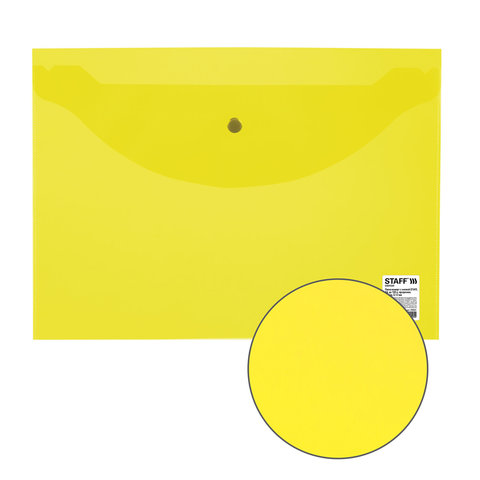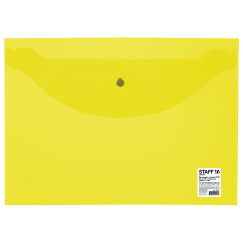 Папка-конверт с кнопкой STAFF, А4, до 100 листов, прозрачная, желтая, 0,12 мм, 226031