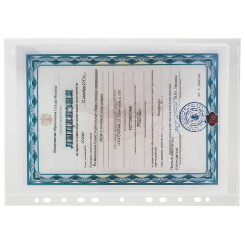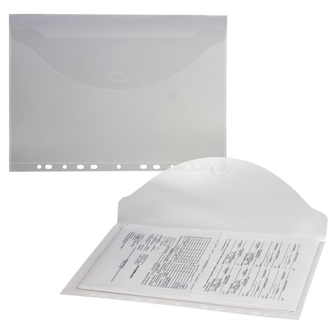 Папка-конверт с перфорацией BRAUBERG, А4, КОМПЛЕКТ 10 шт., до 50 листов, прозрачная, 0,15 мм, 227312