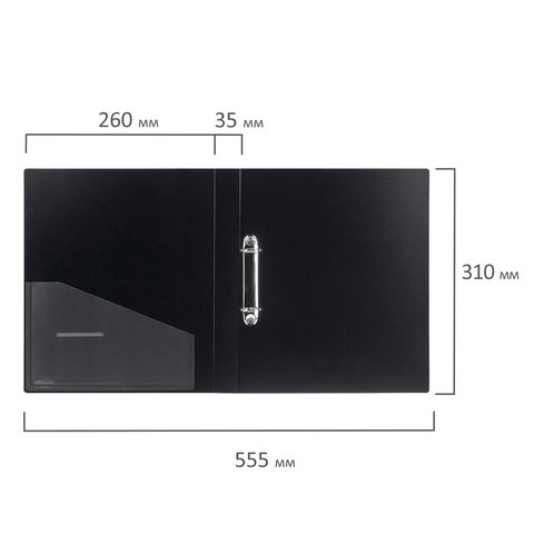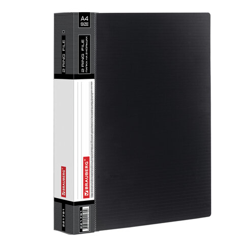 Папка на 2 кольцах BRAUBERG "Contract", 35 мм, черная, до 270 листов, 0,9 мм, 221791