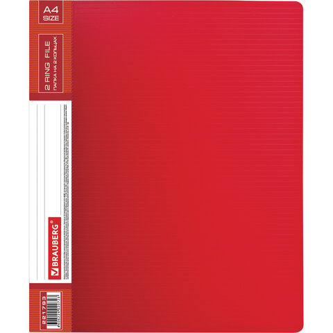 Папка на 2 кольцах BRAUBERG "Contract", 35 мм, красная, до 270 листов, 0,9 мм, 221793