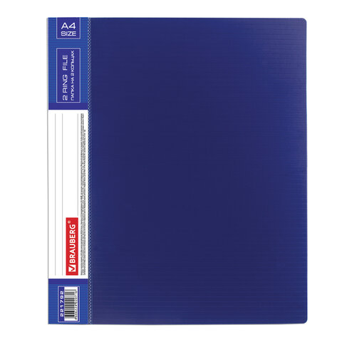 Папка на 2 кольцах BRAUBERG "Contract", 35 мм, синяя, до 270 листов, 0,9 мм, 221792