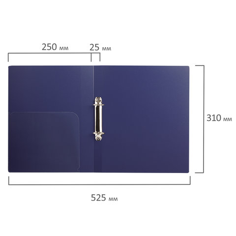 Папка на 2 кольцах BRAUBERG "Диагональ", 25 мм, темно-синяя, до 170 листов, 0,8 мм, 221343
