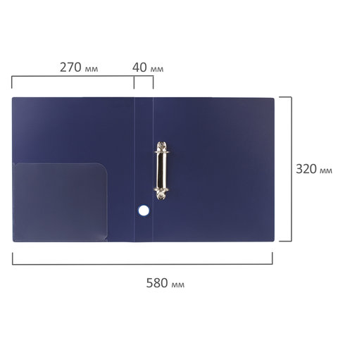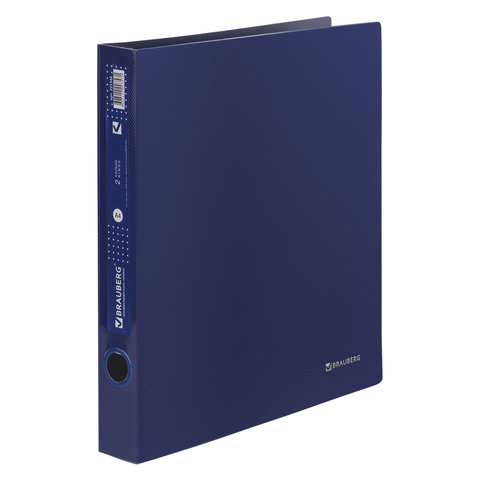 Папка на 2 кольцах BRAUBERG "Диагональ", 40 мм, темно-синяя, до 300 листов, 0,9 мм, 221348