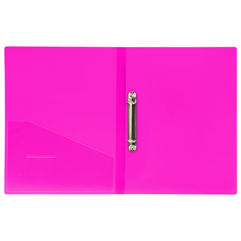 Папка на 2 кольцах BRAUBERG "Neon", 25 мм, внутренний карман, неоновая розовая, до 170 листов, 0,7 мм, 227458