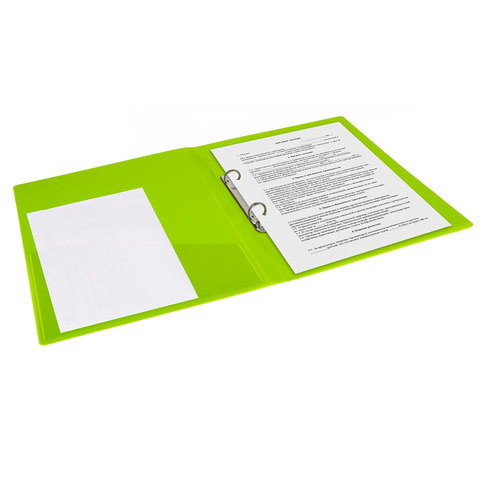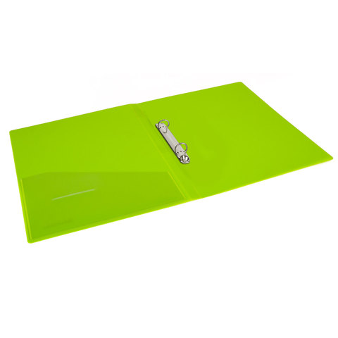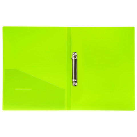 Папка на 2 кольцах BRAUBERG "Neon", 25 мм, внутренний карман, неоновая, зеленая, до 170 листов, 0,7 мм, 227456