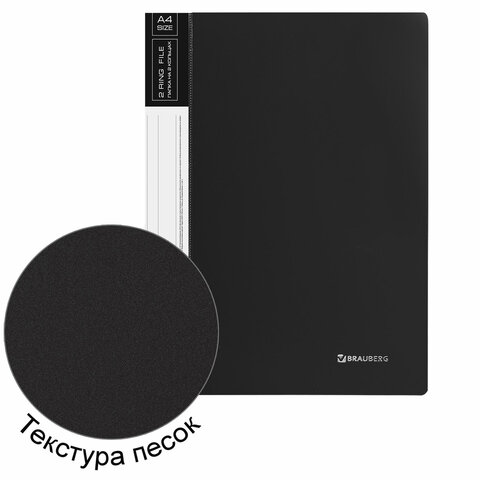 Папка на 2 кольцах BRAUBERG "Стандарт", 25 мм, черная, до 170 листов, 0,8 мм, 221616