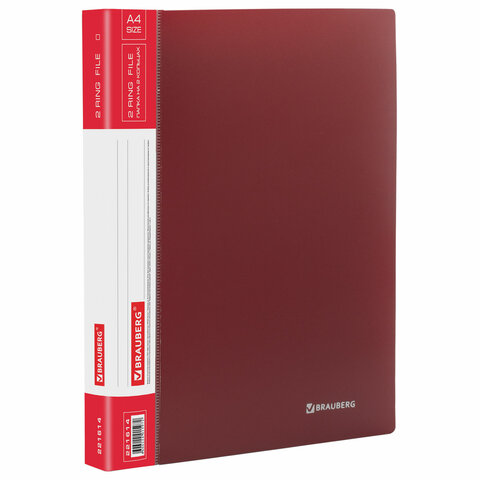 Папка на 2 кольцах BRAUBERG "Стандарт", 25 мм, красная, до 170 листов, 0,8 мм, 221614