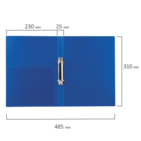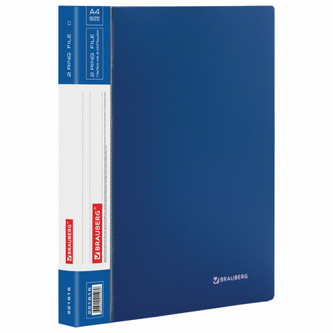 Папка на 2 кольцах BRAUBERG "Стандарт", 25 мм, синяя, до 170 листов, 0,8 мм, 221615
